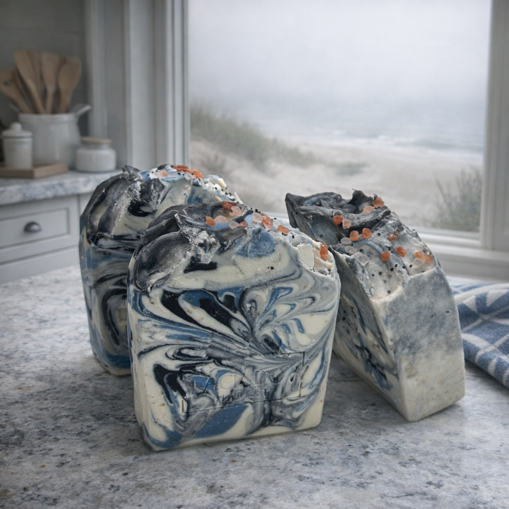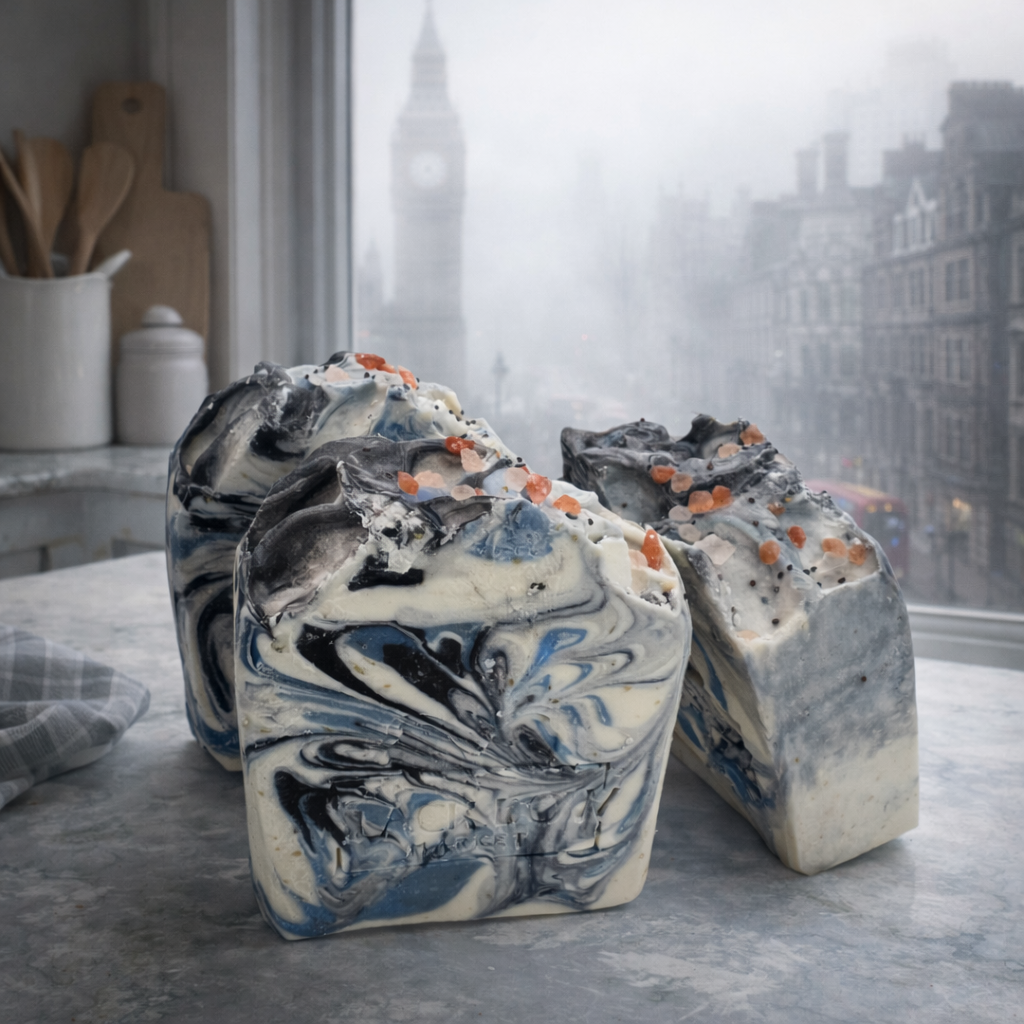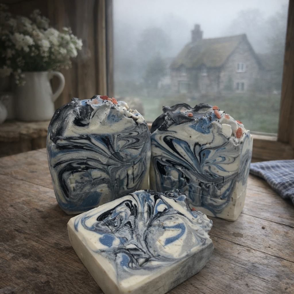 A Foggy Day is an artisan cold process soap inspired by the stillness of a misty morning. The fragrance opens with bright bergamot, crisp apple, and airy ozone for a clean, fresh first impression. It moves into a soft floral heart of jasmine, rose, geranium, and patchouli, then settles into a warm, balanced finish of cedarwood, musk, tonka, and woody notes—fresh and airy at the start, smooth and grounding at the end.