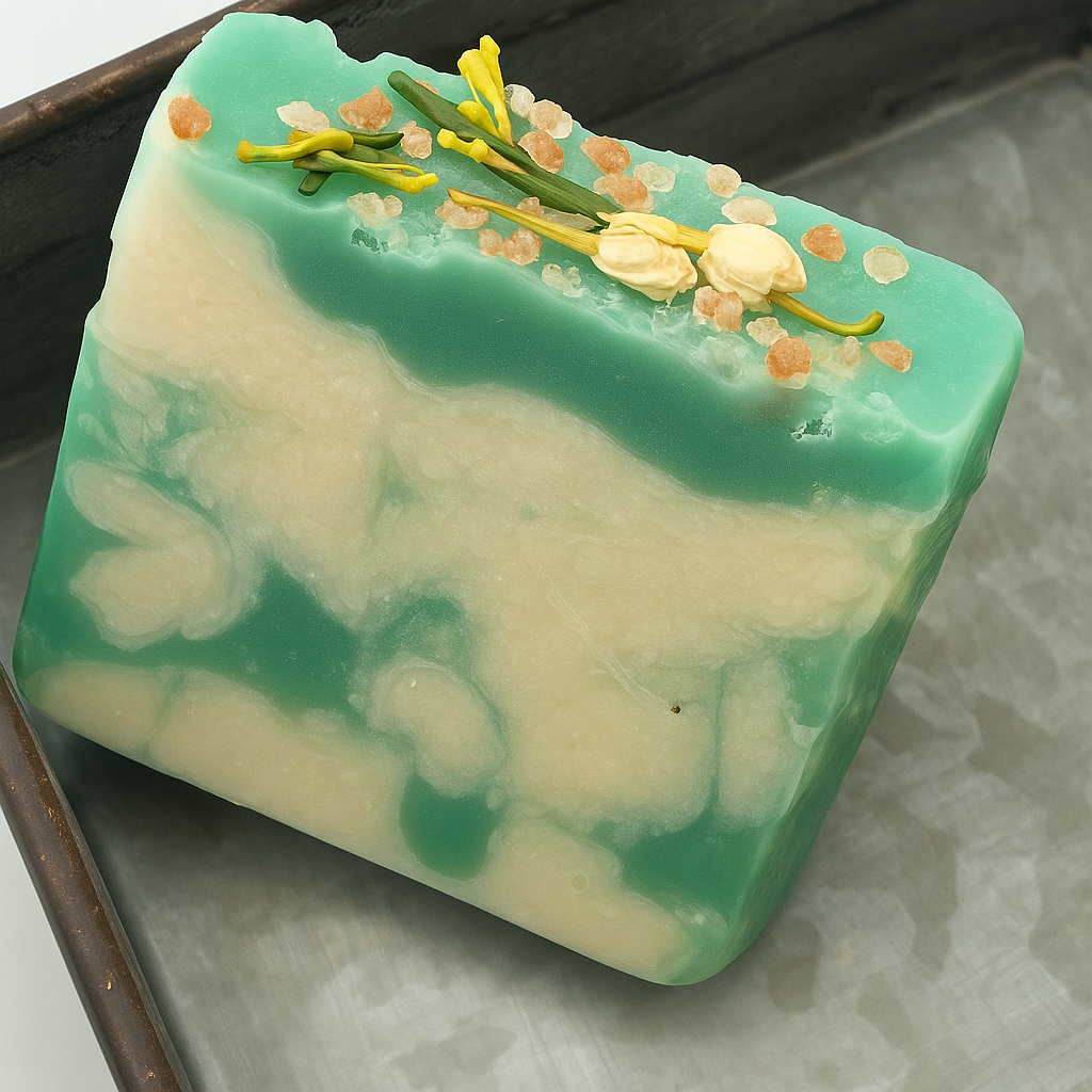 Wrap your senses in a gentle embrace with Whisper Bloom, a delicately scented, artisan soap designed for those who appreciate subtle elegance. This cold-processed bar blends the soft, powdery warmth of cashmere, the fresh floral notes of lily of the valley, and the romantic essence of peony—creating a light, refined fragrance that lingers gracefully.